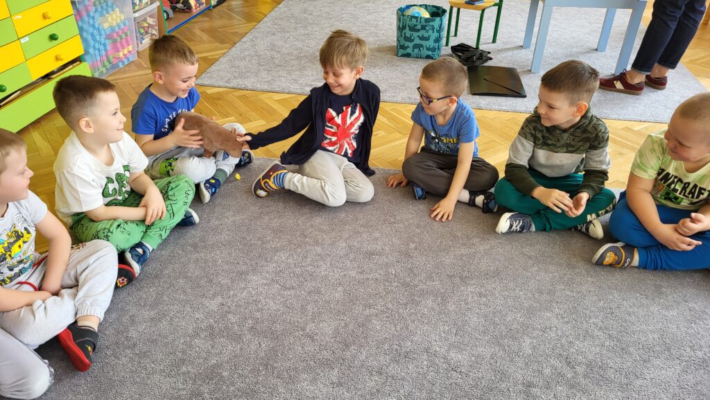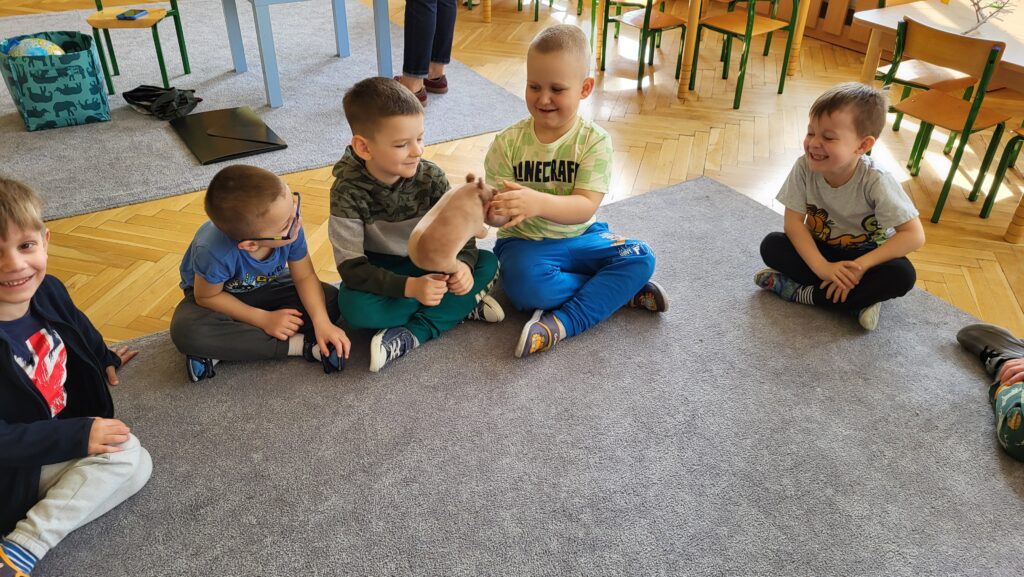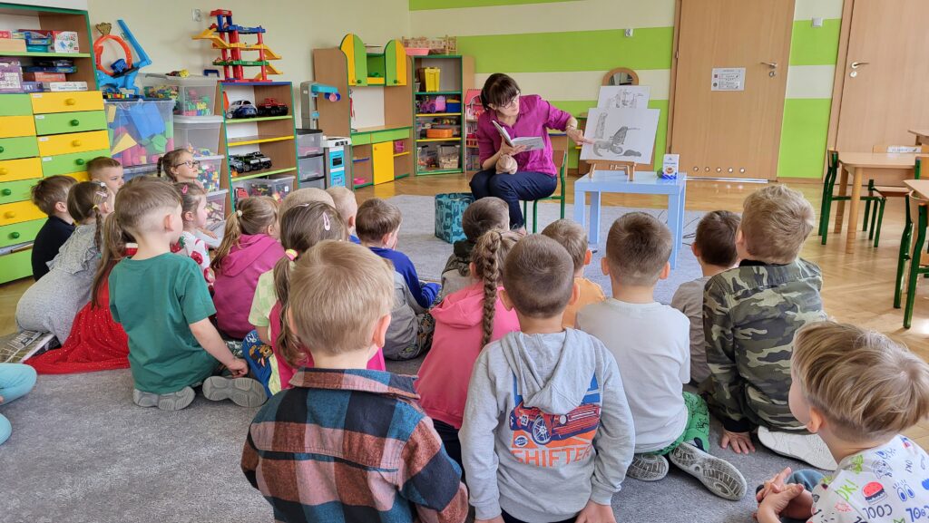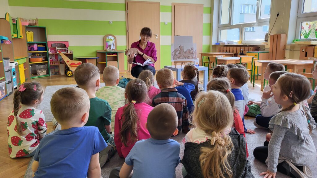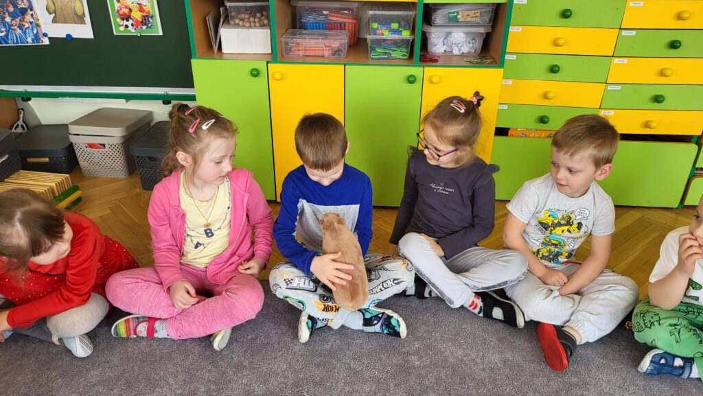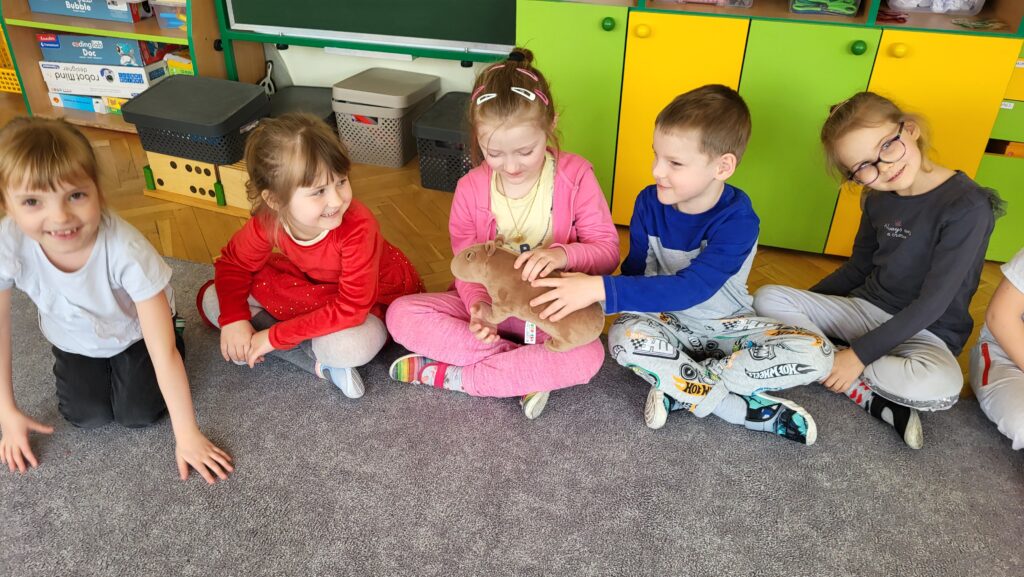 Dzieci poznały niezwykłego bohatera – kapibarę, zwierzęcia znanego ze swojego spokoju, cierpliwości i życzliwego podejścia do świata. Dzieci z zaciekawieniem słuchały fragmentów książki i dzieliły się swoimi przemyśleniami.