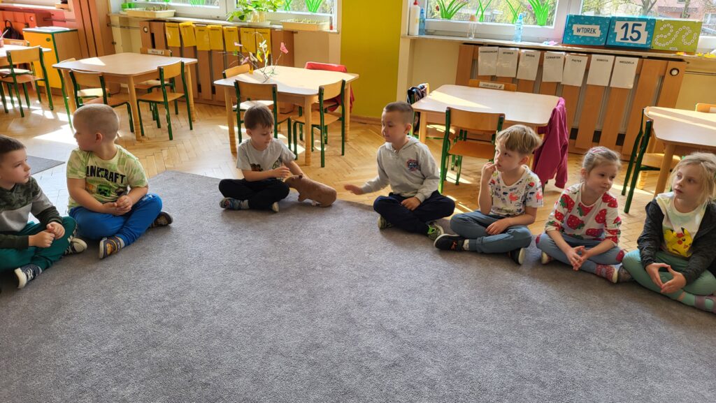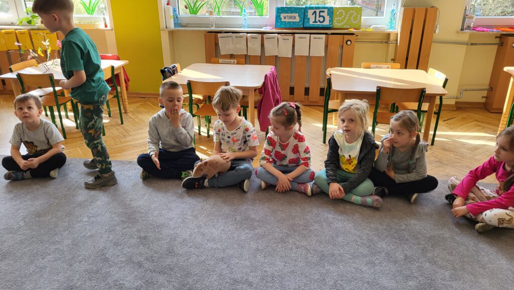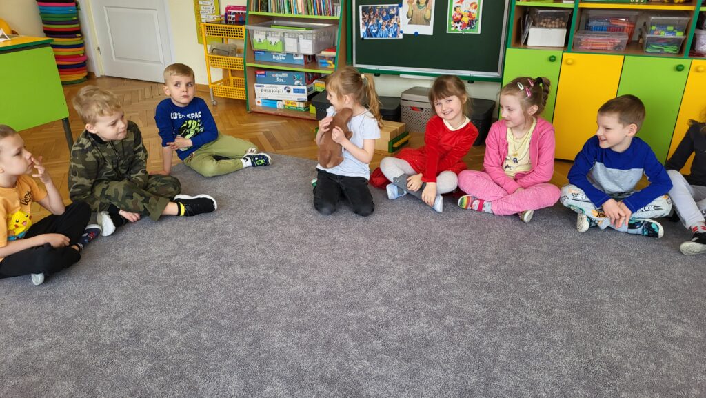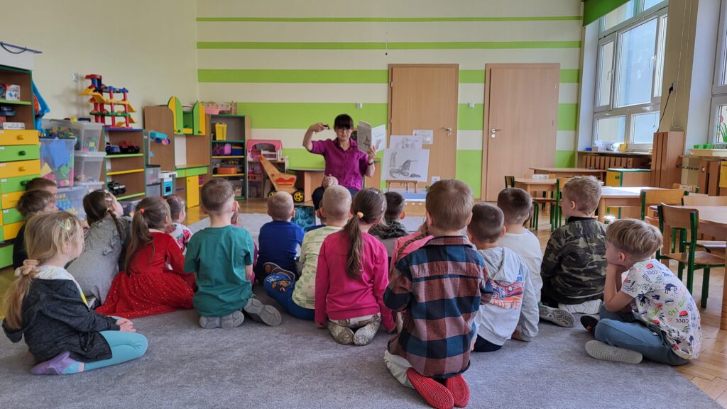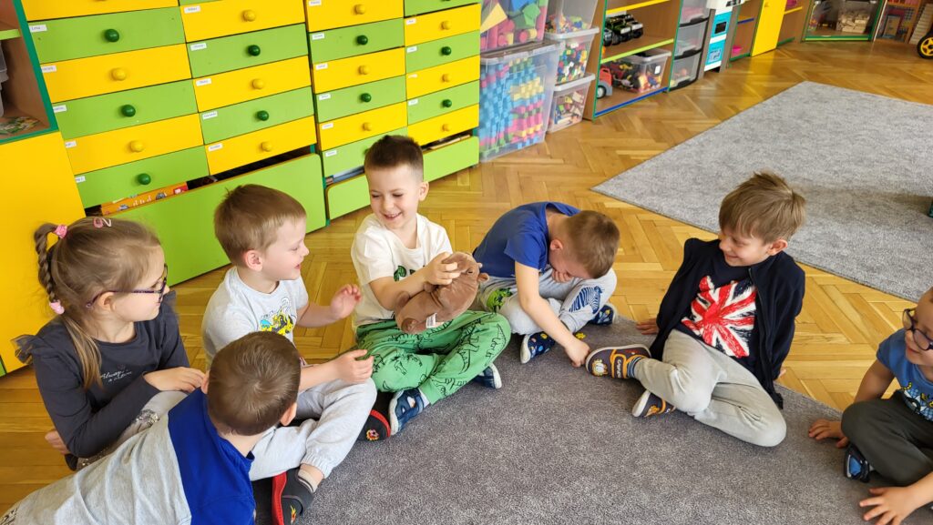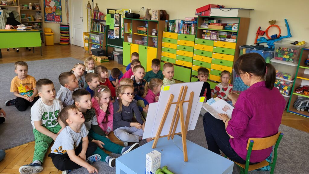 Dzieci poznały niezwykłego bohatera – kapibarę, zwierzęcia znanego ze swojego spokoju, cierpliwości i życzliwego podejścia do świata. Dzieci z zaciekawieniem słuchały fragmentów książki i dzieliły się swoimi przemyśleniami.