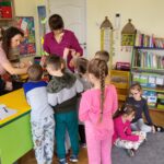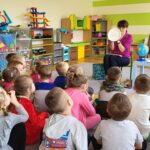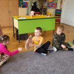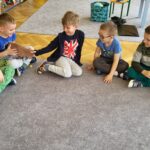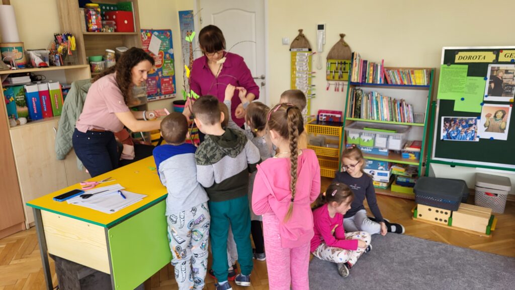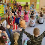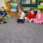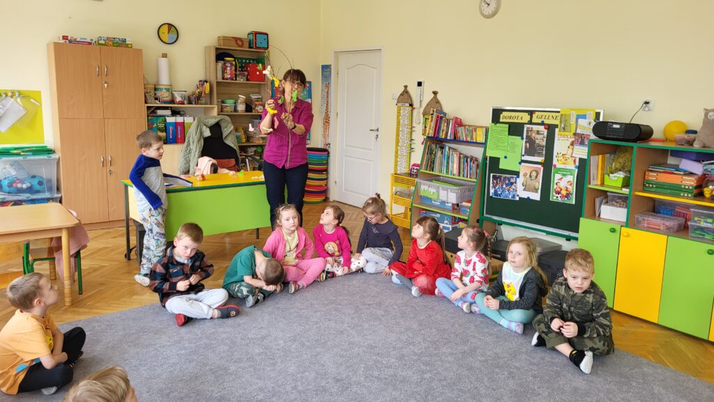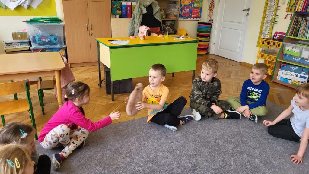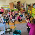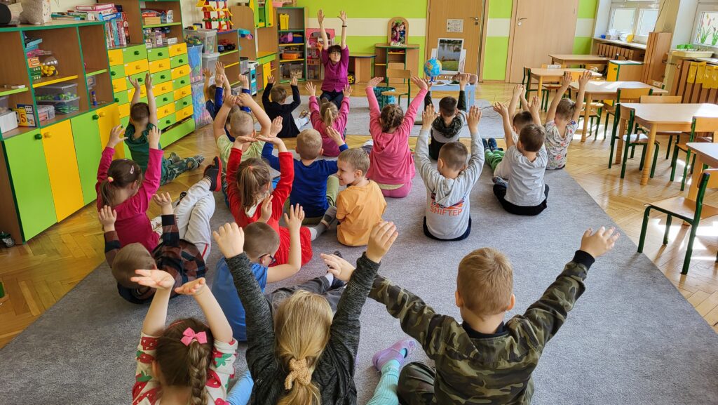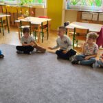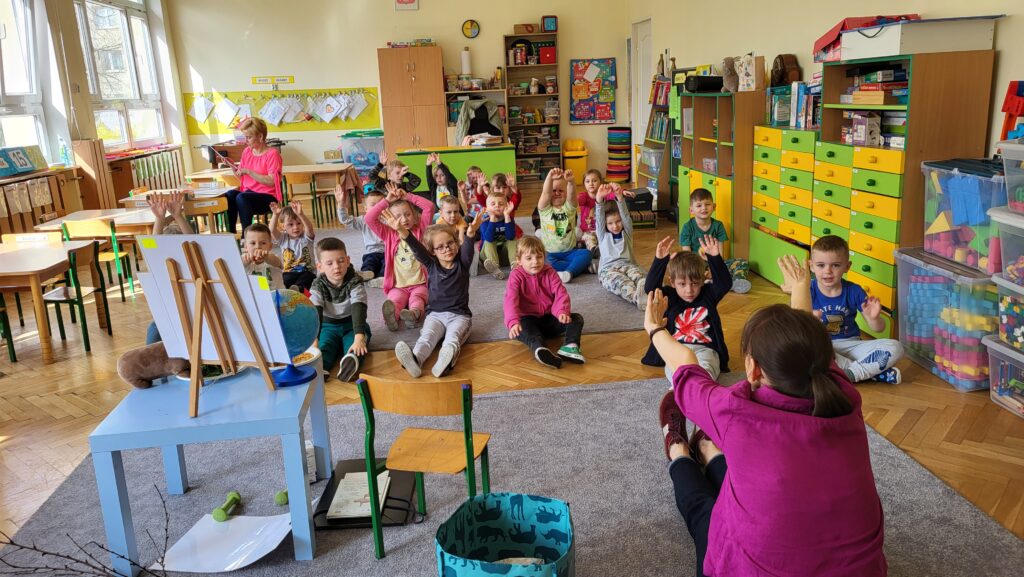 Następnie przedszkolaki wzięły udział w prostych ćwiczeniach mindfulness – skupiały się na oddechu, słuchały dźwięków otoczenia oraz próbowały „zatrzymać się” na chwilę i poczuć, co dzieje się w ich ciele i myślach.